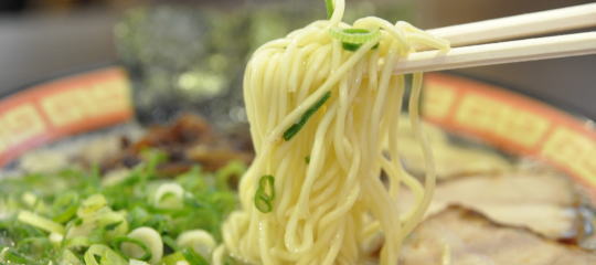 ラーメンの麺は24番手の切り刃を使った、久留米ラーメンとしては、やや細めのストレート中太麺。